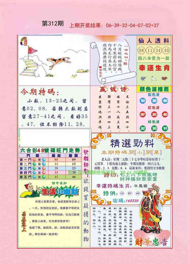 312期:九肖〖兔牛蛇狗猴鼠马羊〗开:龙14中